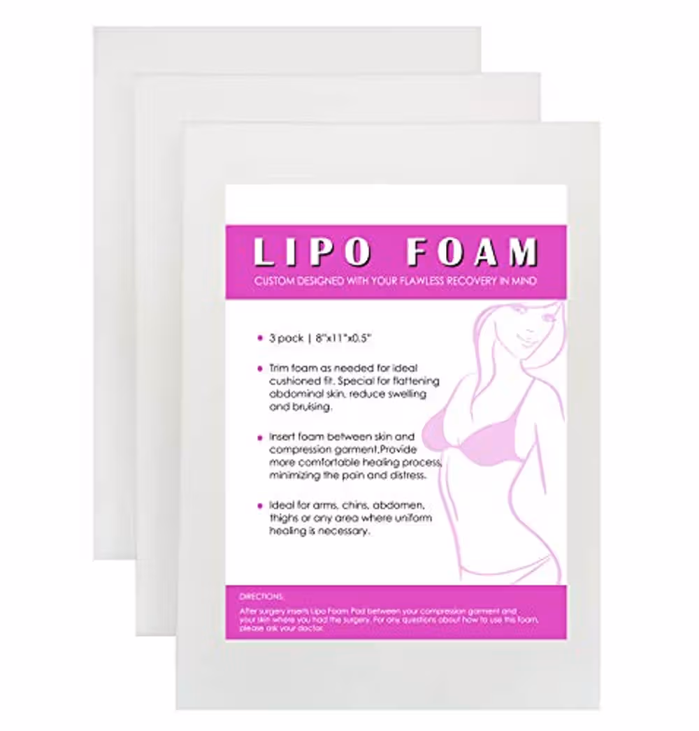 The foam is easily cut to any desired size or shape making it ideal for arms, chins, abdomen, thighs, or any area uniform healing is necessary.